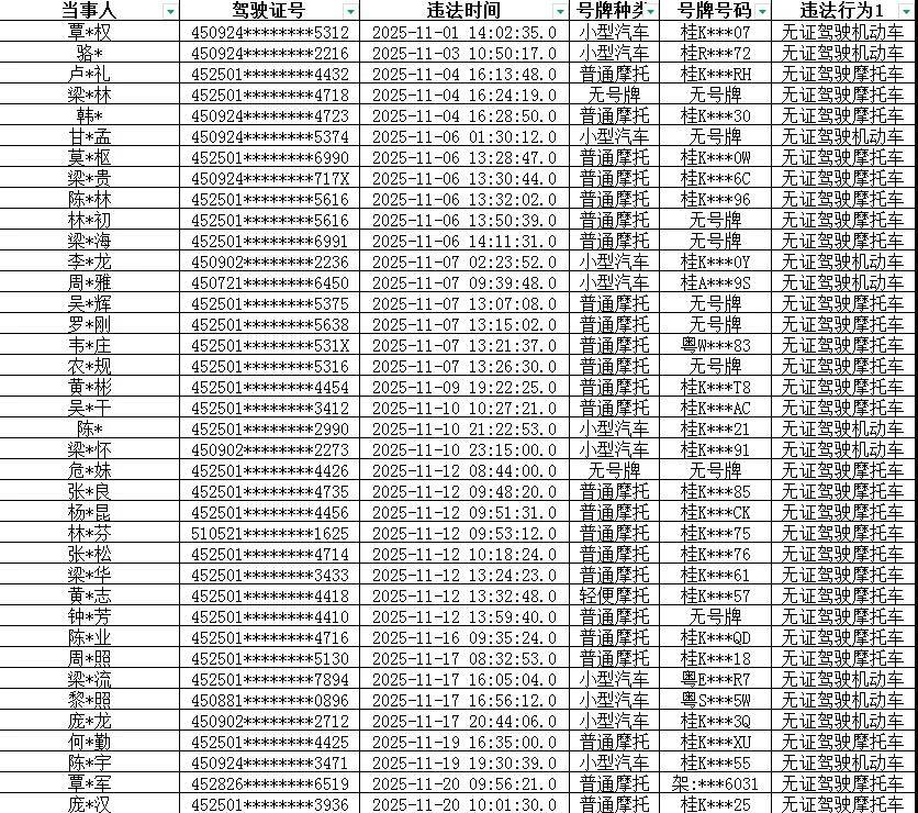 无证驾驶犹如“移动的炸弹”,严重威胁道路交通安全。部分人员心存侥幸、明知故犯,不仅扰乱正常道路交通秩序,更将自己与他人的生命财产安全置于险境。近日,兴业县公安局交通管理大队持续发力,依法查处了一批无证驾驶违法行为,现对相关人员名单予以曝光,以示警示。